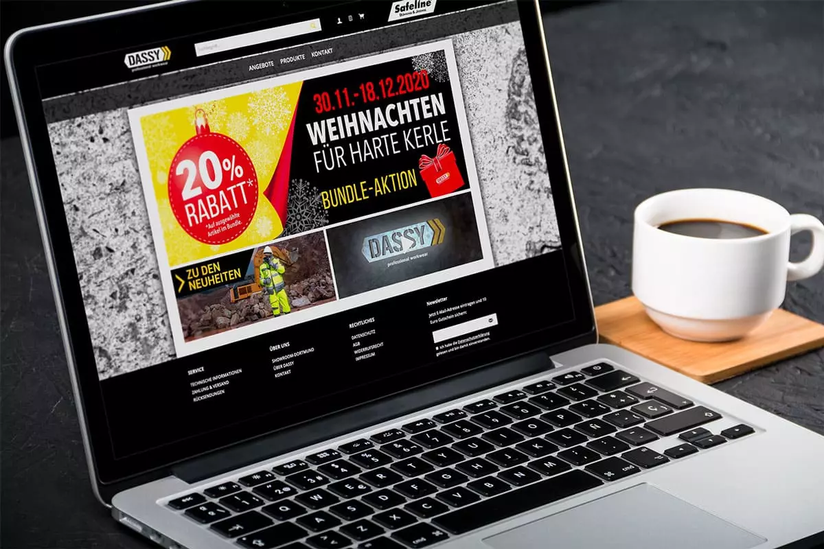 Mehr als nur ein Online Shop für Arbeitskleidung: Mit dem DASSY Shop schlägt Safeline DEXIS die Brücke vom Händler zur Marke. Die Domain, das Shop-Design und auch das Sortiment sind komplett auf DASSY Workwear ausgelegt. Nur die Abwicklung der Bestellung, die läuft über den Dortmunder Händler. Eine optimale Kooperation – schließlich stärkt der Online Shop auch die Marke und hilft DASSY dabei, sich auf dem deutschen Markt durchzusetzen.